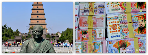 Embarking on a time machine and ticking off the heavily commercialised tourist attractions of Xian, a melting pot of cultures and religions, as well as former home to emperors, courtesans, mandarins, warriors, poets, monks and astrologers, thus (i) visiting the ancient-styled Folk House (admission: CNY 15.- per person), a tastefully restored fine example of a courtyard home (originally the home of the Qing bureaucrat Gao Yuesong) and an art gallery (elaborate works of traditional Chinese painting, calligraphy and paper-cutting) with regular marionette and shadow-puppet demonstrations, (ii) soaking up the incensed air at the Taoist Temple of the Eight Immortals aka Eight Immortals Palace (admission: CNY 3.- per person) which dates back to the Song dynasty (960 - 1279 CE) and is still an active place of worship, mainly dedicated to the legendary Eight Immortals (Han Zhongli, Zhang Guolao, Han Xiangzi, Tieguai Li, Cao Guojiu, Lv Dongbin, Lan Caihe and He Xiangu), and (iii) relaxing in the well-maintained gardens of the squarish Tang-style Giant Wild Goose Pagoda and the delicate Little Wild Goose Pagoda (whose top was shaken off by a powerful earthquake in the middle of the 16th century CE).